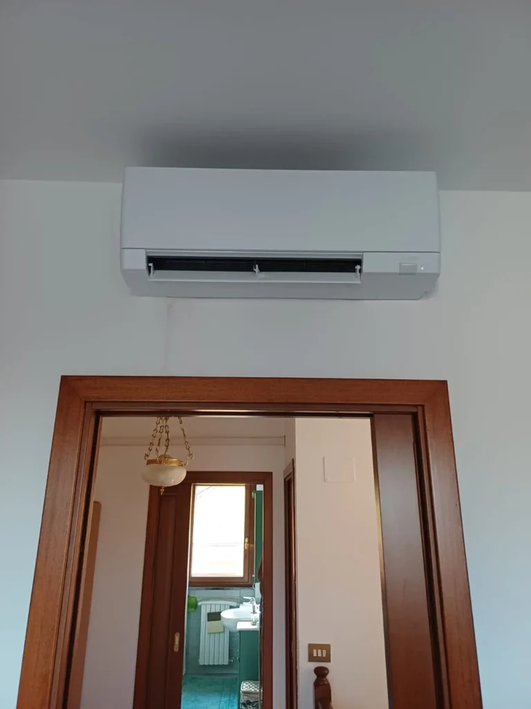 L’impianto è composto da un’unità esterna e due unità interne, installate con particolare cura nella posa delle tubazioni e nell’integrazione con gli spazi esistenti, riducendo al minimo l’impatto visivo. I collegamenti elettrici, lo scarico condensa e la messa in funzione sono stati eseguiti secondo standard elevati, garantendo affidabilità nel tempo.