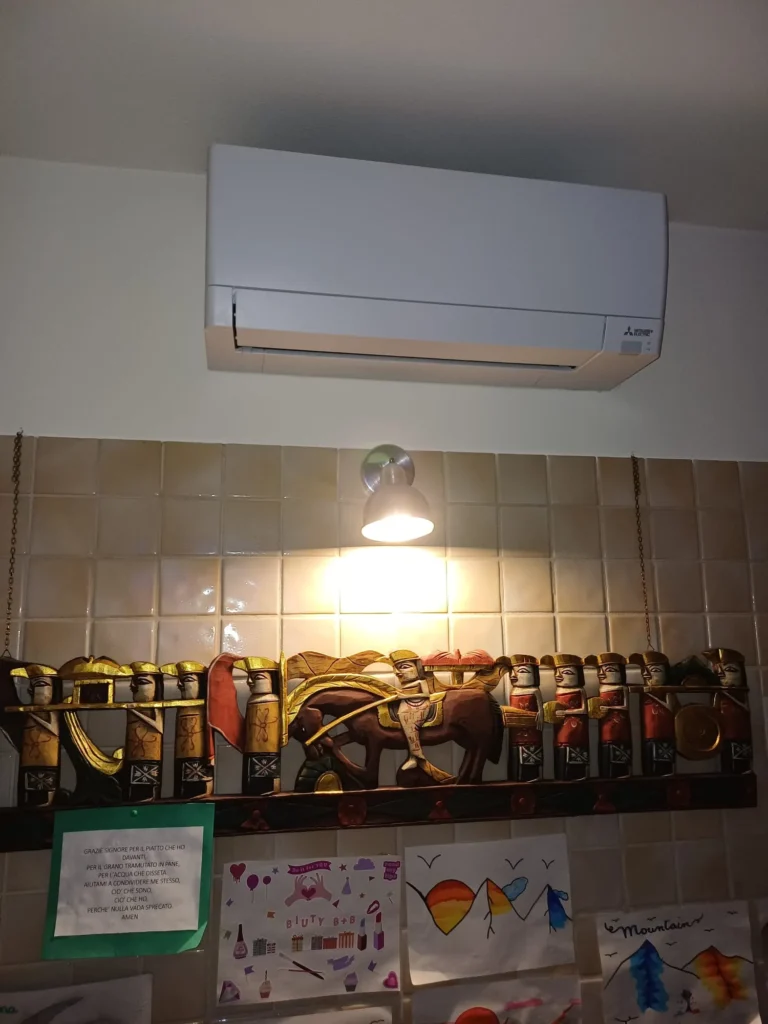 L’installazione è stata eseguita con particolare cura nei dettagli: posa precisa delle tubazioni, integrazione negli ambienti, realizzazione dei collegamenti elettrici e gestione dello scarico condensa, il tutto nel rispetto di elevati standard qualitativi.